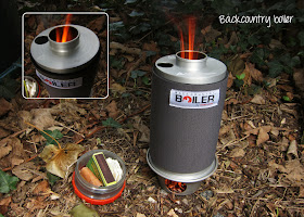 The backcountry boiler is made by boilerworks through the kickstarter website (www.kickstarter.com). I ordered mine quite a while ago and it has finally made its way across the Atlantic. For those of you that are familiar with chimney kettles, the backcountry boiler can be basically classed as a very lightweight modern version of the traditional kelly kettle (wood burning kettle). Chimney or fire kettles such as the these work on the principle of a double walled chimney to heat up a chamber of surrounding water. I reviewed another version of the chimney kettle 'the mkettle' a while back, but this version is like the Mercedes of chimney kettles. The main structure is kept very light by being made of hard anodized aluminium and weighs in at just over 220g (8oz.). One of the main advantages for using wood burning kettles like these instead of gas stoves when backbacking is that you obviously do not need to carry gas cannisters with you which cuts down of the weight carried. All you need to do is gather some combustible materials while on your trek.