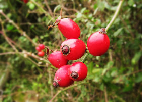 Rose hips, berries from the dog rose, can be made into a variety of jellies, preserves but it's most famous for making syrup. The berries need to be fully ripened before using. Rose hips have a very high content of vitamin C and in the past have been used for various aliments, the most popular being a preventative for the common cold. During the Second World War in England they were even collected on a massive scale to make rose hip syrup, which was used for expectant mothers and their infants. North America's early settlers also used the native variety (the meadow rose: Rosa blanda) to make a soothing syrup used for itches and sores.