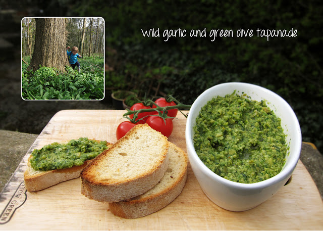 We are just about coming to the end of the wild garlic season but I made this one a few weeks ago. A very simple wild food recipe that adds a garlic zing to a traditional green olive tapenade: